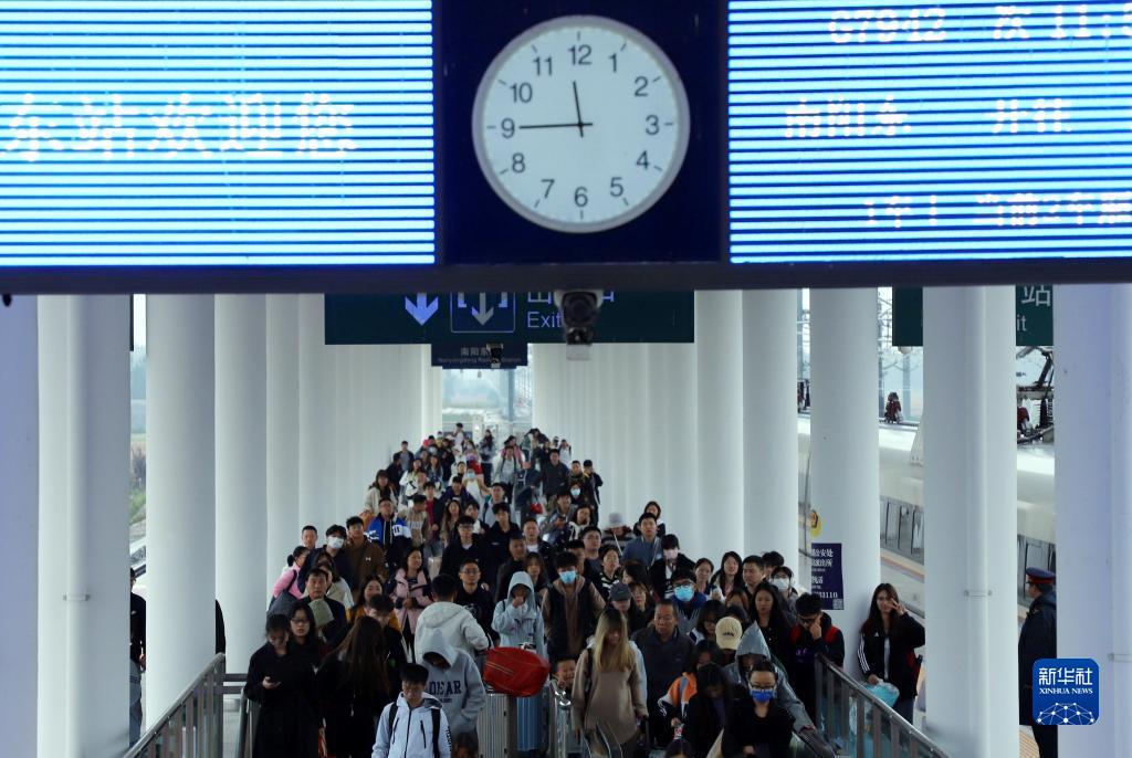 10月6日,在郑渝高铁南阳东站,旅客有序进站。