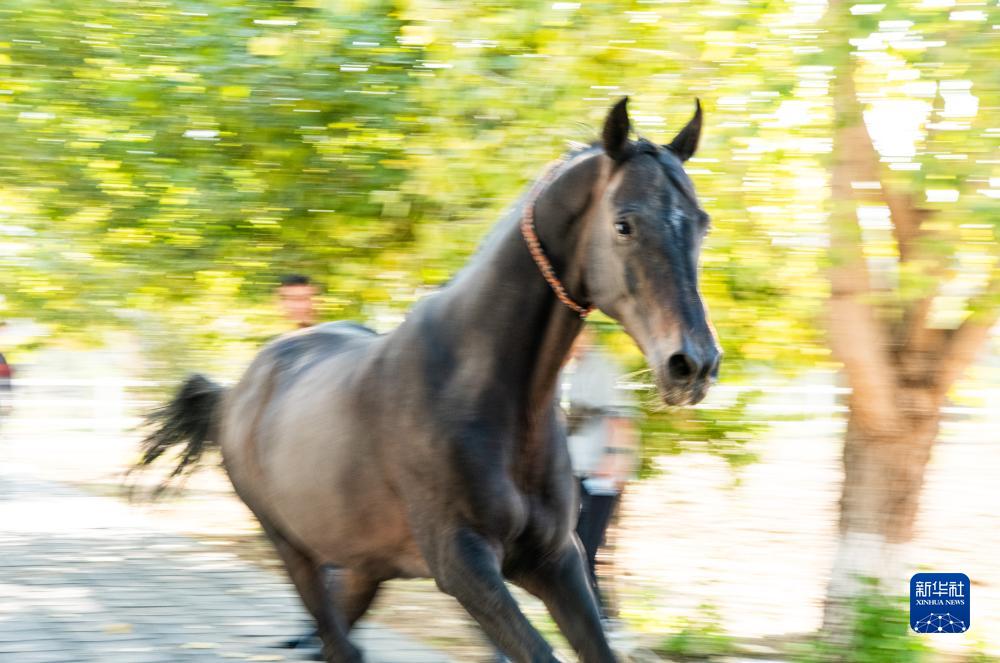 汗血马学名阿哈尔捷金马,原产于土库曼斯坦科佩特山脉和卡拉库姆沙漠间的阿哈尔绿洲。阿哈尔捷金马是世界最古老的马种之一,被土库曼人称为“天马”,是土库曼斯坦的国家象征,其形象被绘制在土库曼斯坦国徽中央。新华社记者 邬惠我 摄