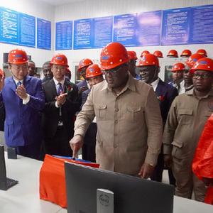 10月6日,刚果(金)总统齐塞克迪(中)在位于卢阿拉巴省的布桑加水电站按下发电机组运行总按钮,这标志着布桑加水电站正式开始发电。