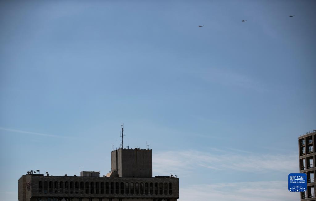 10月7日,军事直升机在耶路撒冷上空执勤。