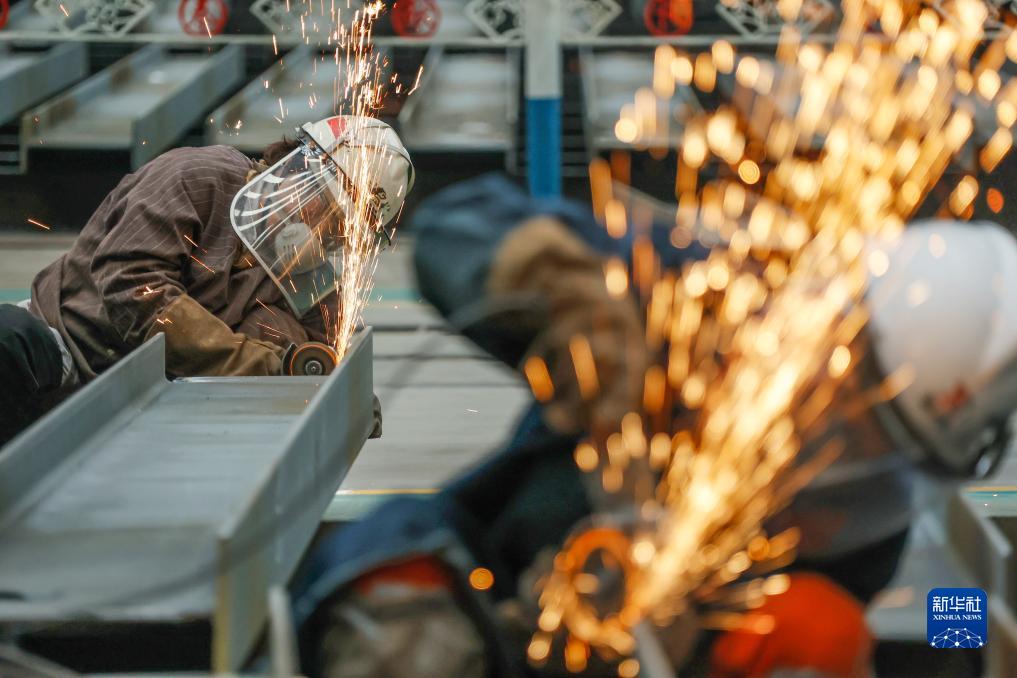 10月7日,工人在海油工程天津智能化制造基地结构预制车间内进行切割作业。