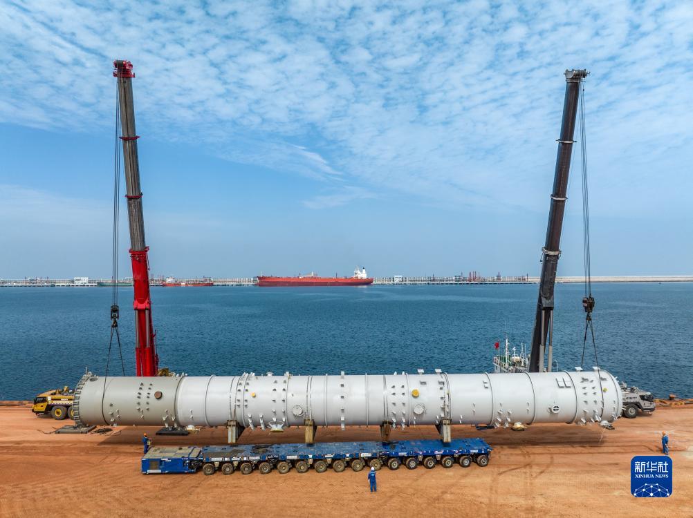 10月7日,在山东港口烟台港西港区,一件171吨重的设备被吊装上岸(无人机照片)。