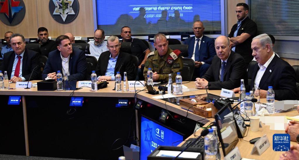 10月7日,以色列总理内塔尼亚胡(右一)出席在特拉维夫举行的安全内阁会议。
