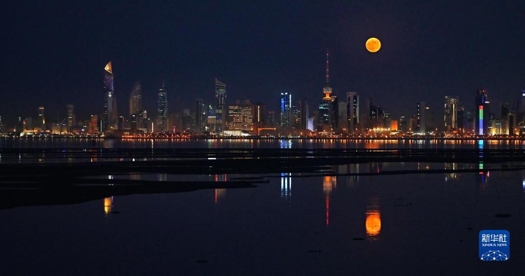这是9月29日在科威特首都科威特城拍摄的月亮。