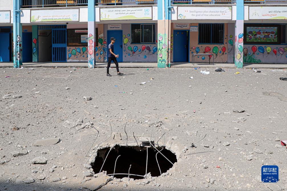 这是10月8日在加沙城一所学校拍摄的以色列空袭对地面造成的破坏。