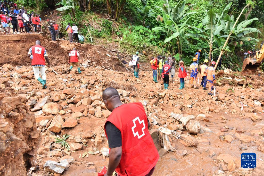 10月9日,人们在喀麦隆雅温得山体滑坡灾害现场开展搜救工作。