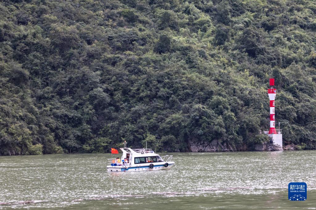 10月9日,重庆市巫山县生态环境监测站的工作人员在长江巫峡口段进行水质监测采样。