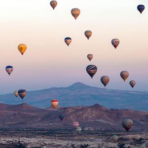 卡帕多基亚位于土耳其安纳托利亚高原中部,几百万年前火山喷发出的大量岩浆冷却、凝固、风化后形成了该地独特的喀斯特地貌。热气球观光是当地著名的旅游项目,每天都有众多来自世界各地的游客在此体验热气球之旅。