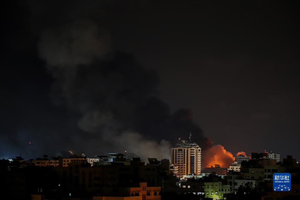 这是10月9日晚在加沙城拍摄的以色列军队空袭产生的浓烟。
