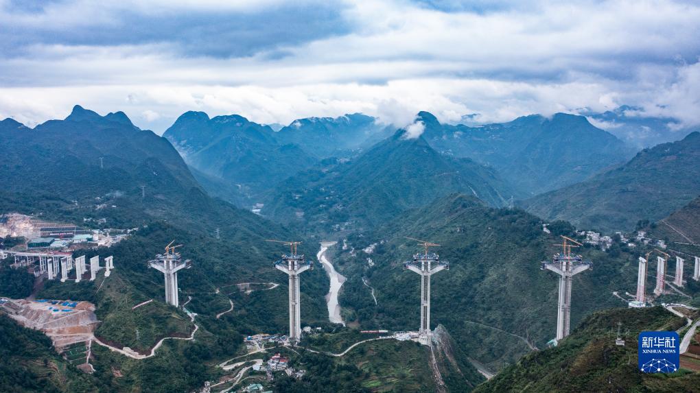 建设中的纳晴高速六枝特大桥(10月9日摄,无人机照片)。