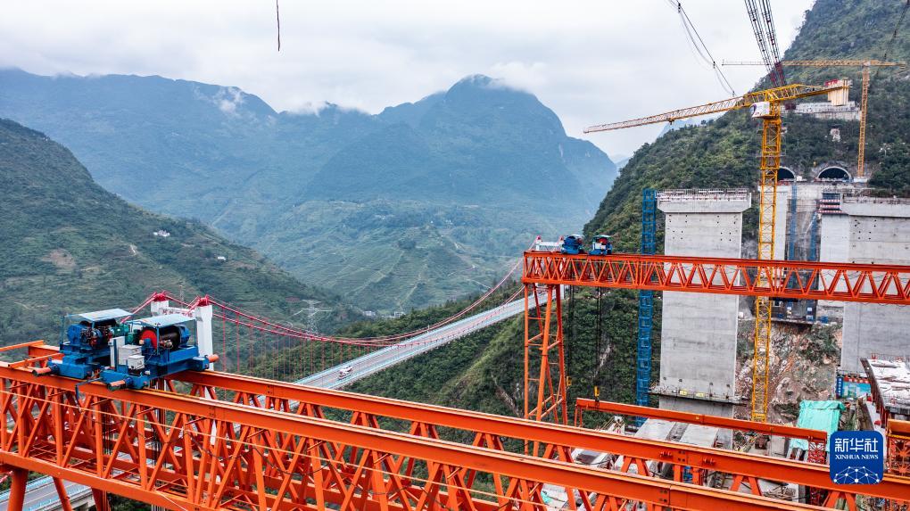建设中的纳晴高速乌蒙山大桥(10月10日摄,无人机照片)。