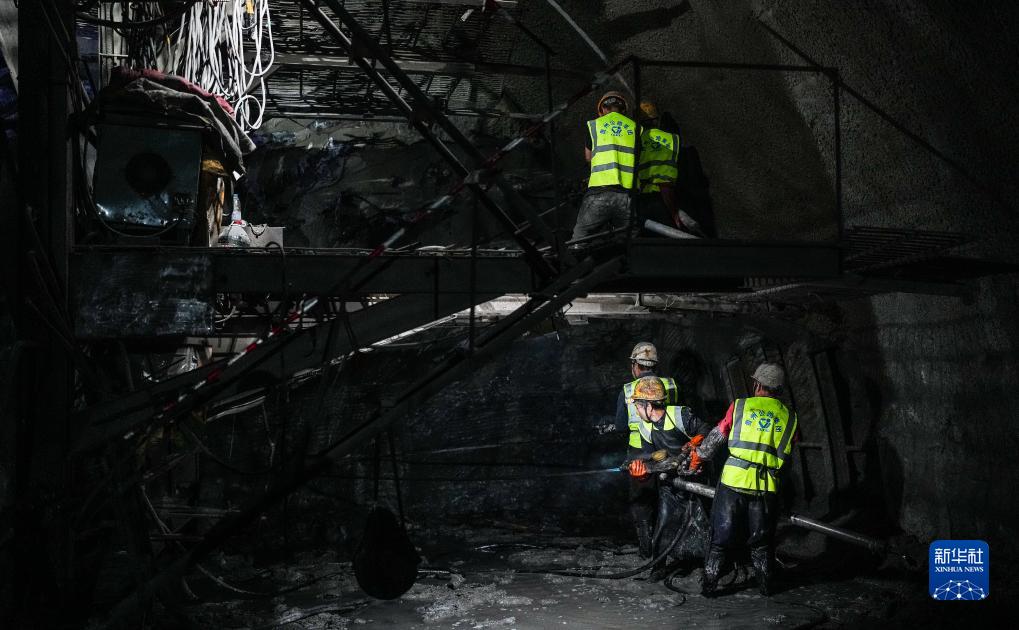 工人在纳晴高速下坝隧道内进行施工(10月9日摄)。