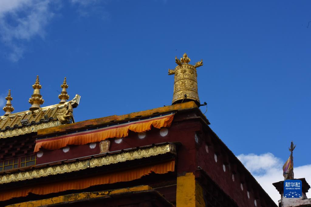 10月10日在四川甘孜藏族自治州理塘县拍摄的藏式建筑一角。