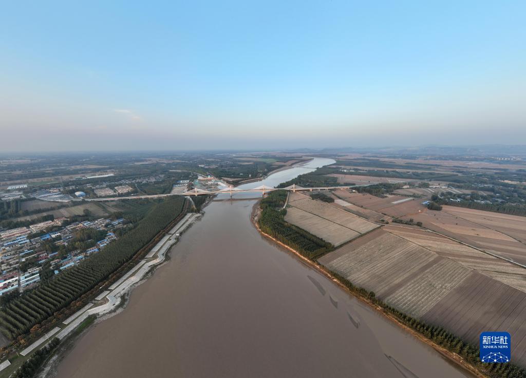 山东聊城位山灌区的黄河位山闸(10月10日摄,无人机照片)。