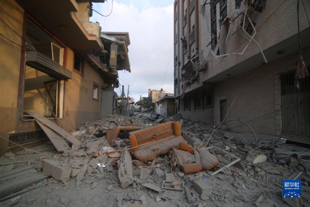 这是10月11日在加沙地带南部城市拉法拍摄的被以色列空袭炸毁的建筑。