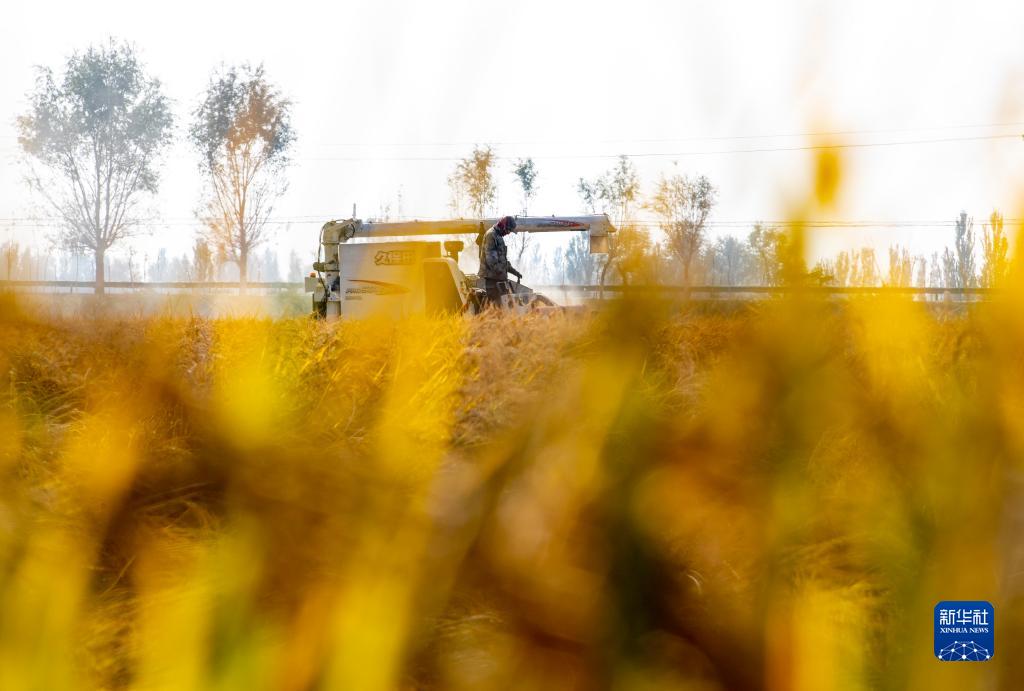 金秋时节,宁夏银川市贺兰县迎来水稻收割季,田间地头一片繁忙景象。近年来,贺兰县严守耕地红线,筑牢粮食安全,2023年全县水稻种植面积达3.8万亩。