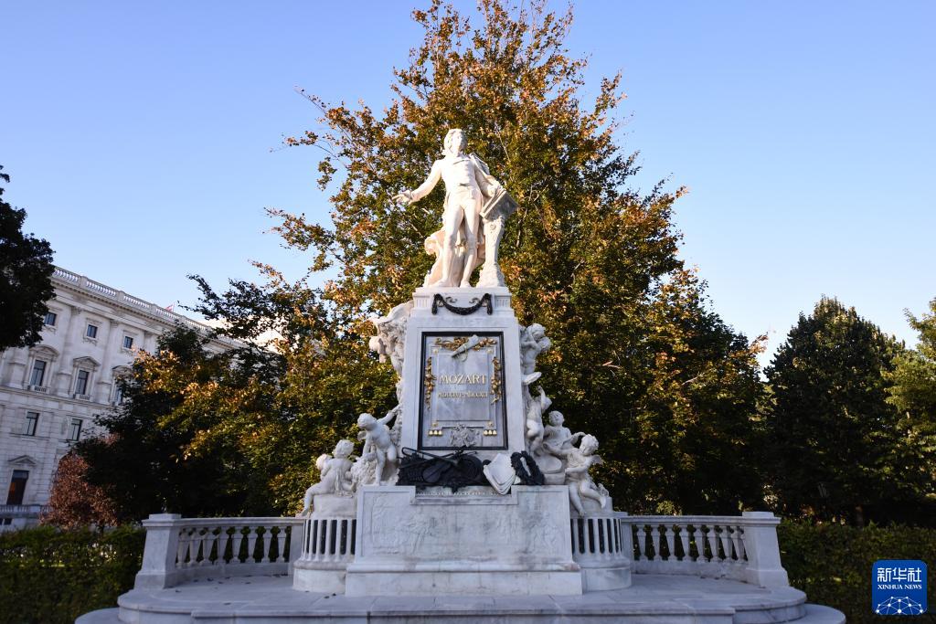 这是9月7日在奥地利维也纳拍摄的莫扎特纪念碑。