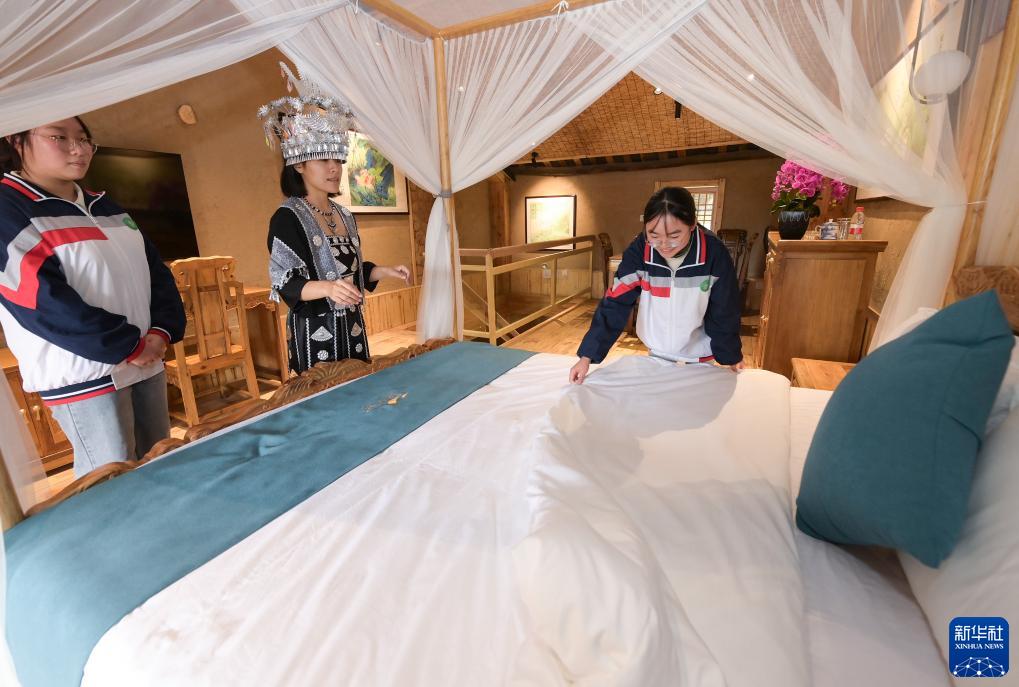 10月10日,重庆梁平职教中心的学生们来到桥头镇的陶然居瓦屋小寨,在陶然半山民宿内进行专业实践。