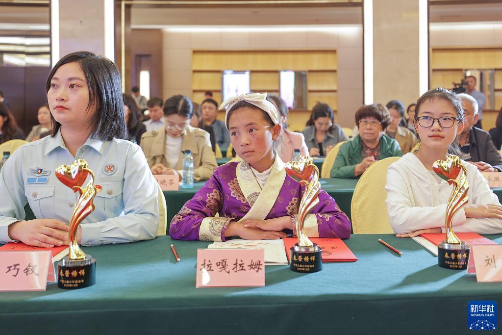 10月11日,第12个“国际女童日”之际,春蕾绽放新时代——深化推进“春蕾计划-梦想未来”行动会议在北京举行。这是“春蕾榜样”代表参加活动。