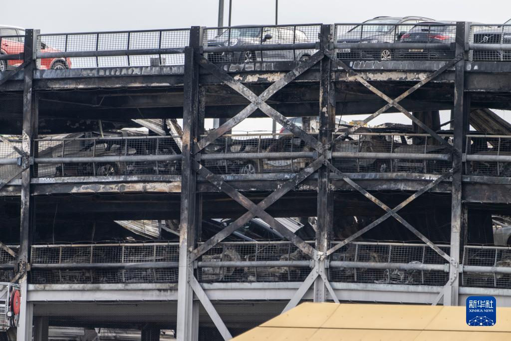 这是10月11日在英国伦敦卢顿机场航站楼拍摄的失火停车场。