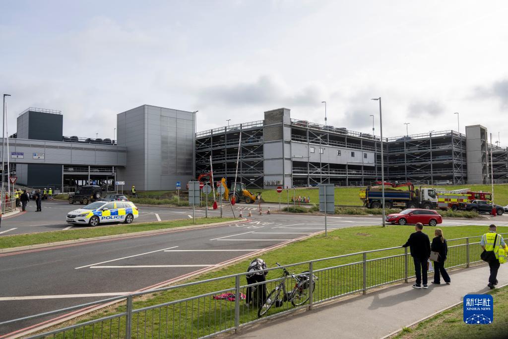 这是10月11日在英国伦敦卢顿机场拍摄的失火停车场。