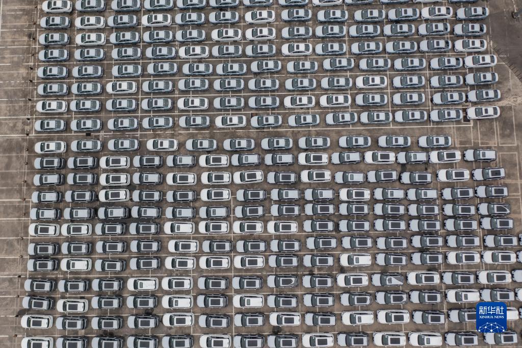 这是10月11日在重庆国际物流枢纽园区拍摄的等待出口的汽车(无人机照片)。