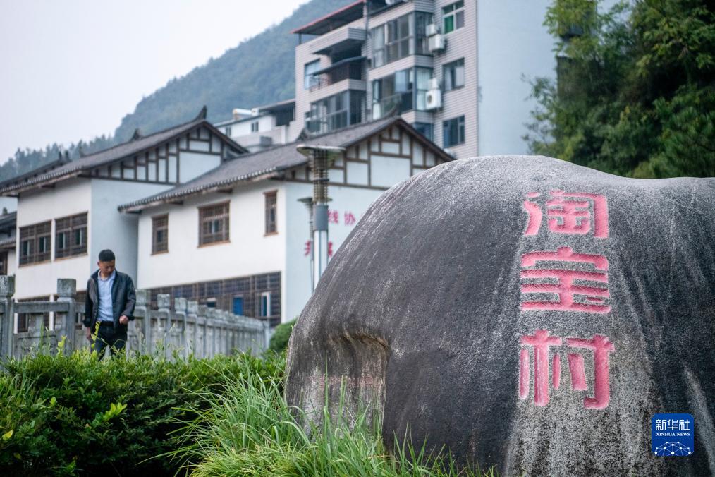 10月11日在湖北省郧西县下营村拍摄的“淘宝村”标志。