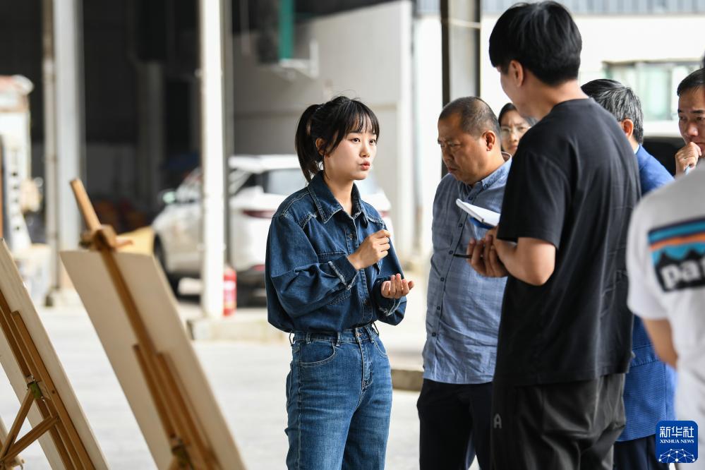 10月10日,在成都崇州市隆兴镇,王伶俐(左一)向前来合作社参观的人员介绍情况。