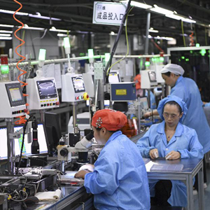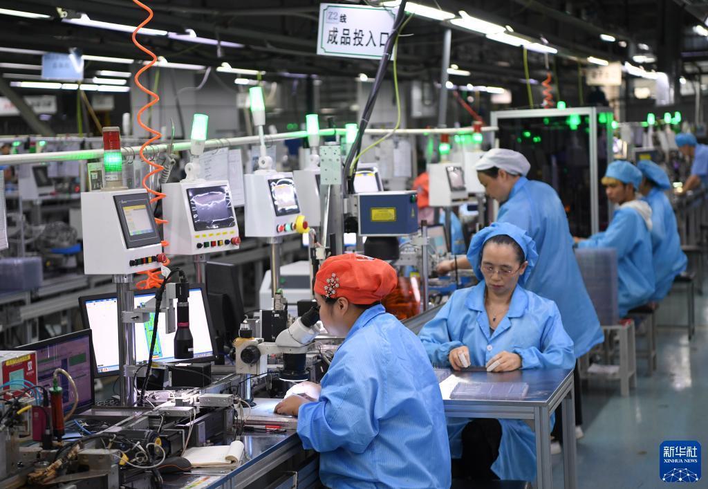 10月12日,在位于重庆市两江新区的重庆市灵龙电子有限公司,工作人员在线性马达生产数字化车间作业。
