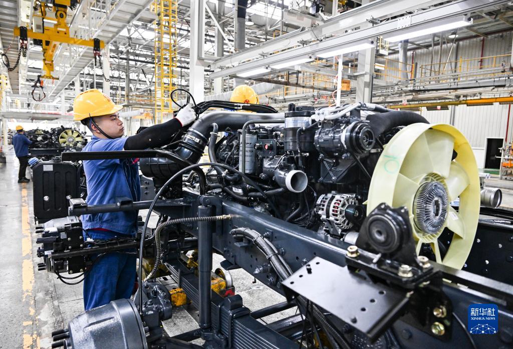 9月26日,工作人员在重庆市两江新区的上汽红岩汽车有限公司总装车间作业。