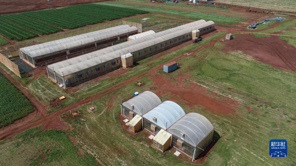 这是10月11日在位于巴西圣保罗州克拉维纽斯拍摄的隆平巴西育种温室大棚(无人机照片)。