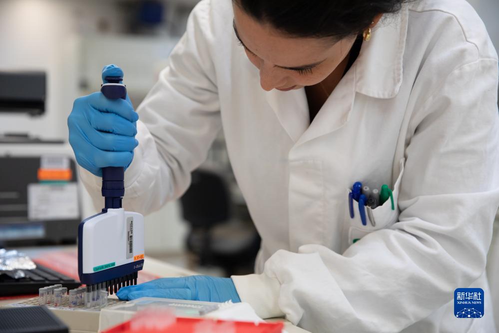 10月11日,一名科研人员在位于巴西圣保罗州克拉维纽斯的隆平巴西分子生物实验室内工作。