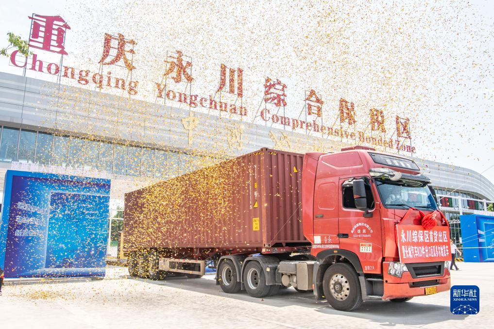 重庆永川综合保税区首货出区暨长城汽车KD件出口始发车顺利发车(2023年7月11日摄)。当日,重庆永川综合保税区首批货物顺利通关出区。该批货物是长城汽车部分系列车型的成套零部件(简称KD件),将分别经由重庆团结村和重庆果园港启运,通过铁海联运和江海联运两种方式,于7月中旬和9月抵达泰国林查班港和厄瓜多尔瓜亚基尔港。