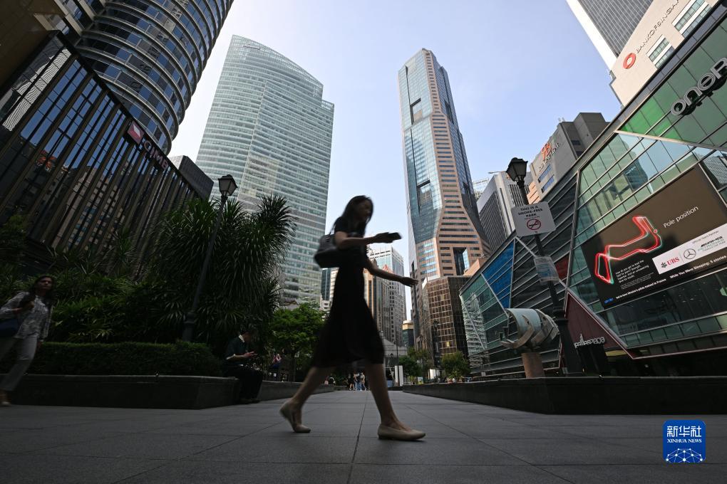 行人经过新加坡莱佛士坊金融商业区(2023年9月4日摄)。