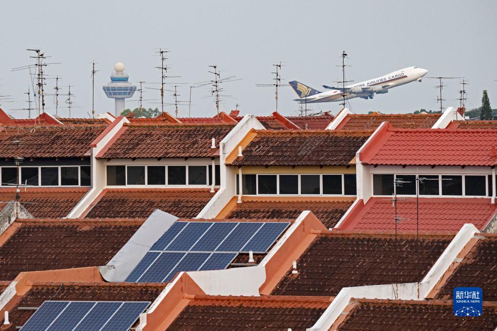 一架新加坡航空公司运输机从新加坡樟宜机场起飞(2023年8月31日摄)。新加坡樟宜机场是大型国际枢纽机场,年客容量可达8500万,年货邮吞吐量可超过200万吨。