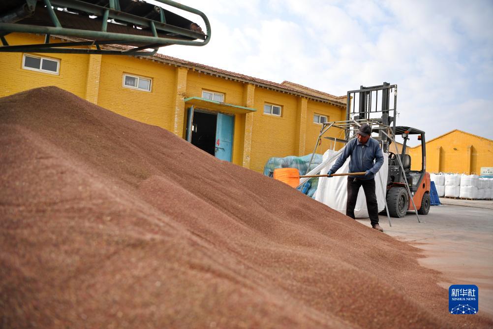 10月12日,河北省沽源县一家藜麦加工企业的工人在整理收获的藜麦。