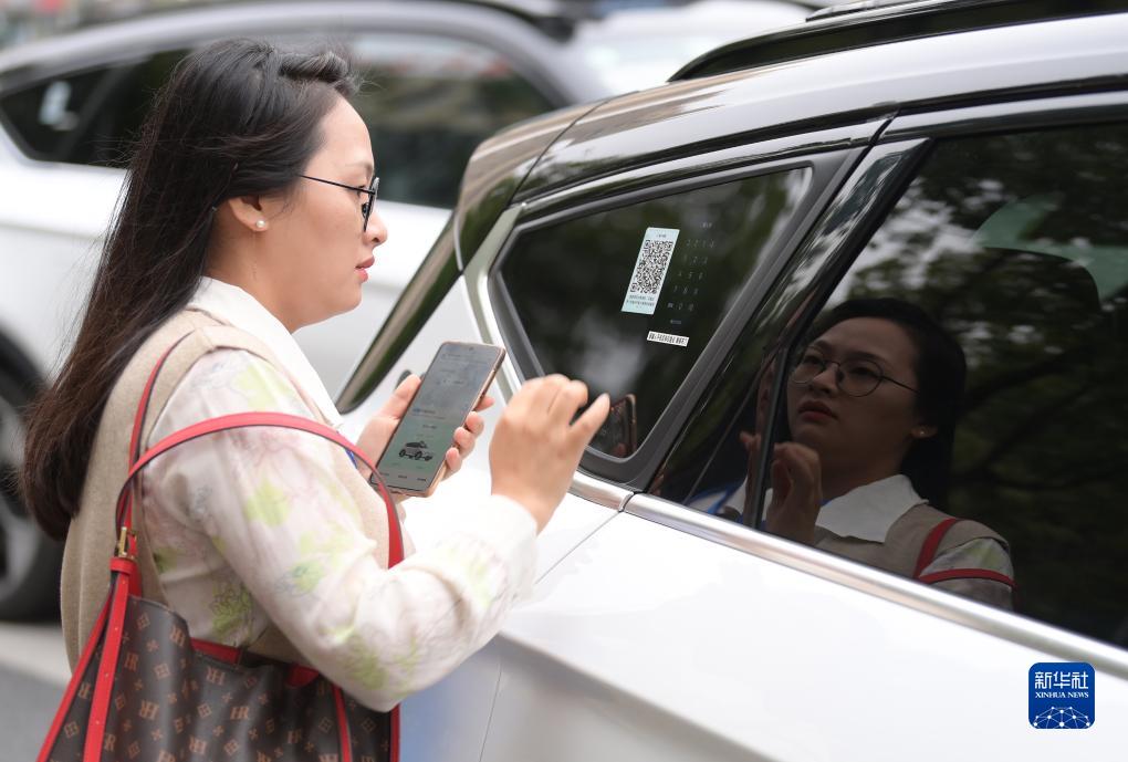 10月11日,一位试乘者在准备登上一辆无人自动驾驶商业运营车辆前输码解锁。