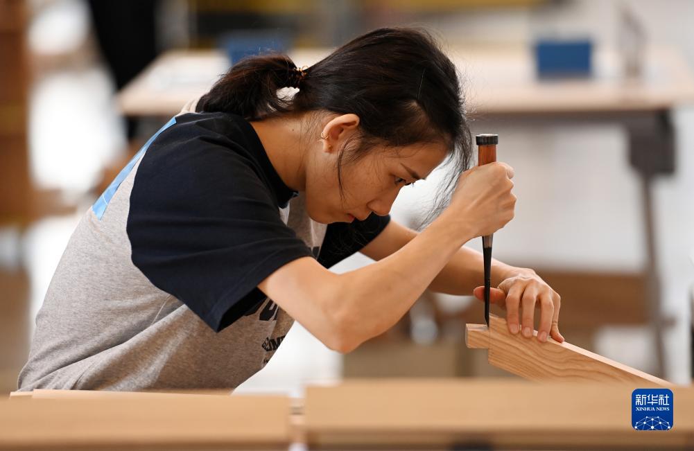 9月17日,参赛选手在中国第二届职业技能大赛上参加木工项目比赛。