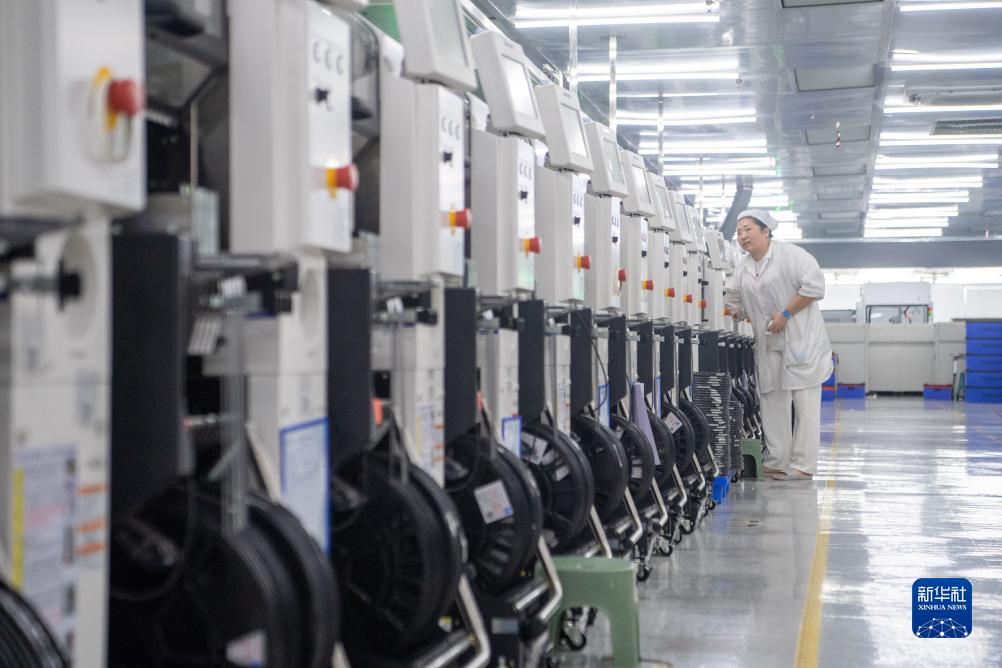 10月12日,在位于重庆市綦江高新区的新视通智能科技有限公司生产车间内,工作人员在生产线上工作。重庆綦江区在推进传统产业数字化改造的同时,大力培育战略性新兴产业,以卫星制造和大数据应用为核心的新一代信息技术、新材料、装备制造、节能环保、消费品工业五个新产业呈现集群化发展的良好态势。