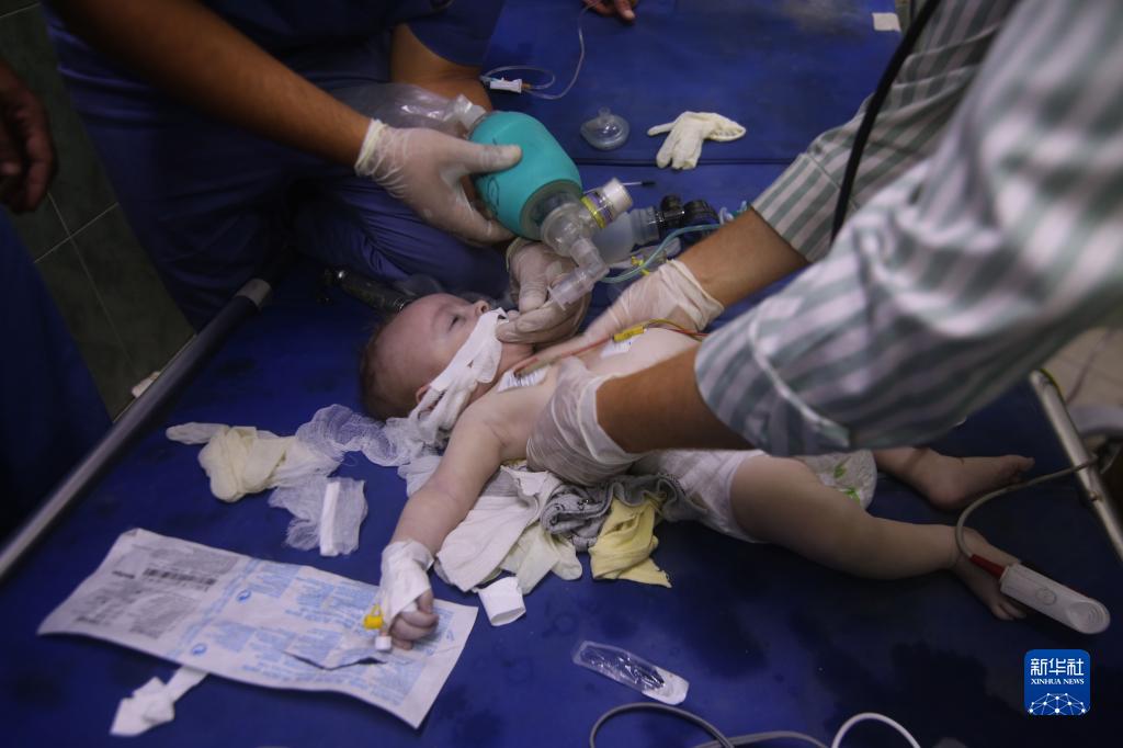 10月13日,在加沙地带南部城市拉法,一名幼儿在医院接受治疗。
