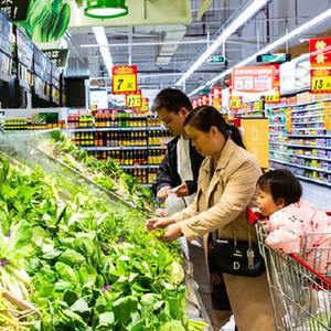 10月13日,顾客在贵州省安顺市西秀区一家超市选购蔬菜。