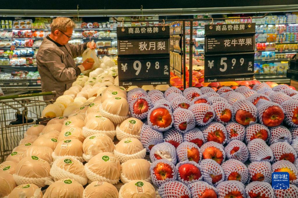 10月13日,顾客在河北省遵化市一家超市选购水果。