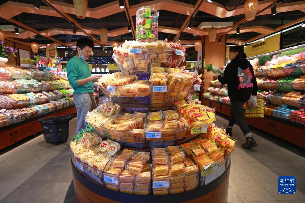 10月13日,顾客在贵州省黔东南苗族侗族自治州岑巩县一家超市选购食品。