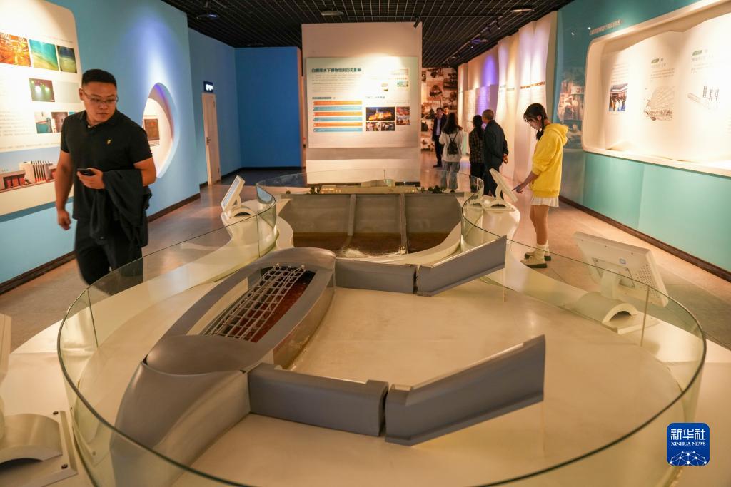 10月13日,游客在重庆涪陵白鹤梁水下博物馆的地面陈列馆参观。