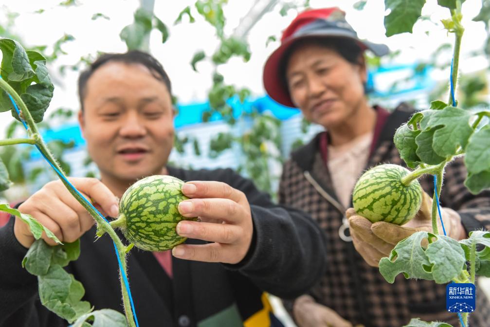 10月13日,在理塘县玛吉阿米花园农庄的智慧农业无土栽培馆,农庄负责人丁义(左)向当地藏族群众卓玛拥忠讲解玲珑西瓜的管理技术和注意事项。