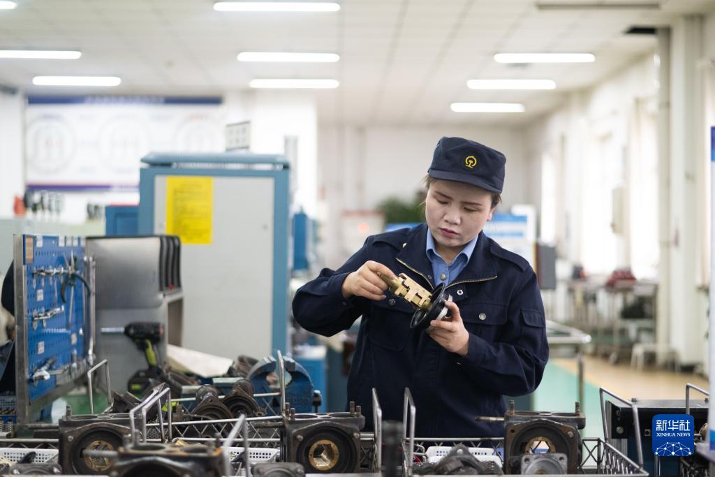 10月12日,在中国铁路青藏集团有限公司西宁东车辆段制动班组,马婷检查120阀主阀配件。