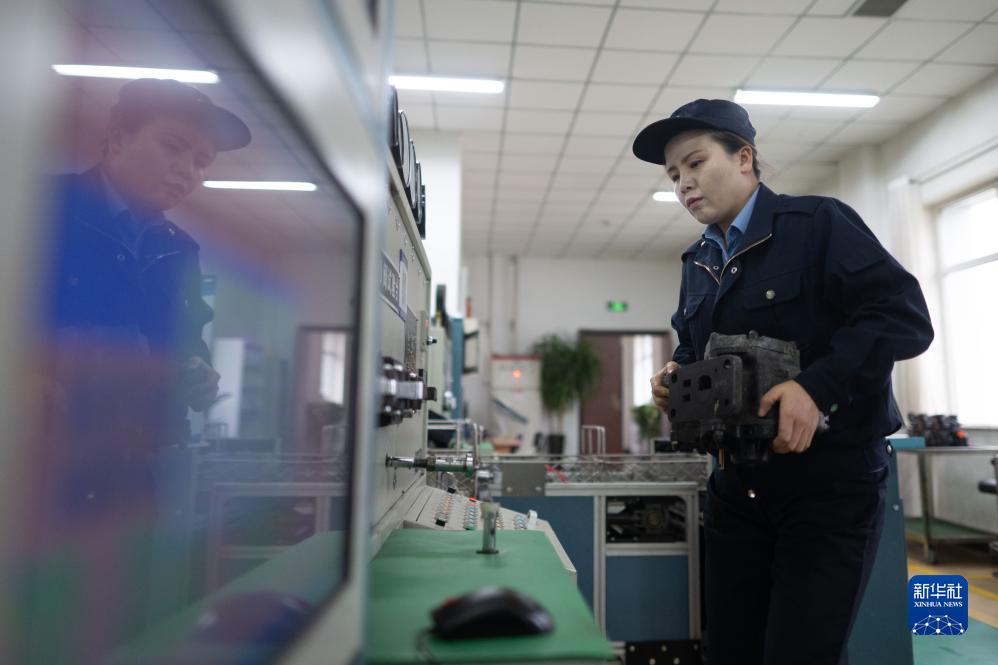 10月12日,在中国铁路青藏集团有限公司西宁东车辆段制动班组,马婷在搬运120阀主阀。
