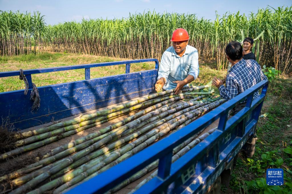 近日,地处洞庭湖畔的湖南省益阳市南县乌嘴乡港口村种植的甘蔗丰收。近年来,港口村因地制宜发动村民种植甘蔗。目前,当地甘蔗种植户达270户,甘蔗种植总面积近1000亩,带动300余人就业增收。