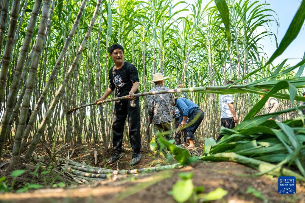 近日,地处洞庭湖畔的湖南省益阳市南县乌嘴乡港口村种植的甘蔗丰收。近年来,港口村因地制宜发动村民种植甘蔗。目前,当地甘蔗种植户达270户,甘蔗种植总面积近1000亩,带动300余人就业增收。