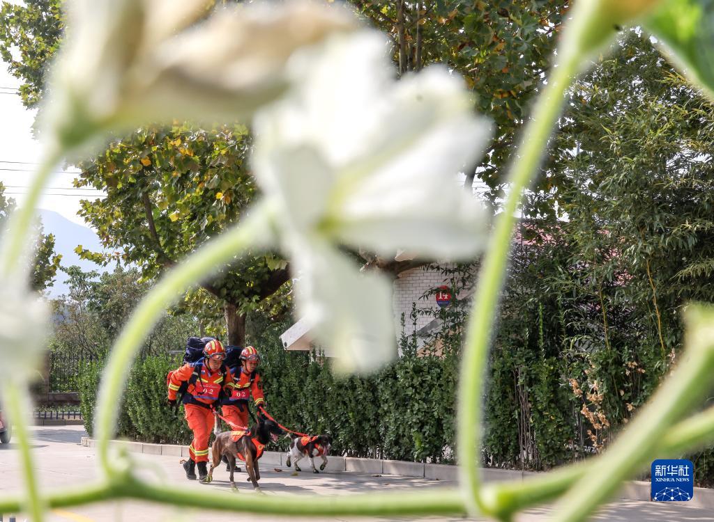 10月14日,参赛训导员和搜救犬前往废墟搜救主场地。